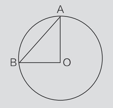 在下图中,O 是圆的中心。如果 AB =3√2,圆的周长是多少?