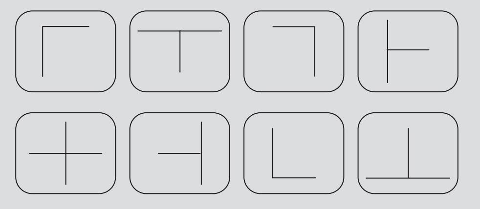方框中有 8 个由线条构成的图形,请在 30 秒内记忆下来并默写。
