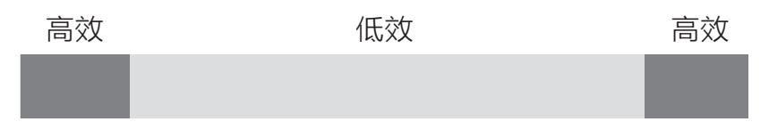 即我们的记忆过程包括首尾两个高效小段,以及中间的一大片低效长段。
