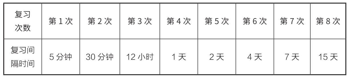 表 7–1 艾宾浩斯记忆复习节奏