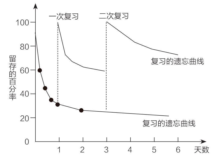 根据第一特性,我们学完知识以后应当尽早复习。如果我们等到几天甚至几个星期以后才复习,此时我们已经将相应的知识点忘得差不多了,复习时几乎就不叫复习了,而是重新学习一遍了,这样效率自然会更低。比如,很多学生的习惯是这样的:上了一周英语课,课上讲完的新单词都没有复习过,而是留到周末回去集中复习;生物、地理、政治、历史这些学科由于没有语文、数学、英语分值那么大,而且平时单元测试也少,所以学的知识点平时从不复习,基本上要堆到期中、期末之前才会复习——已经隔了几个星期甚至几个月了。