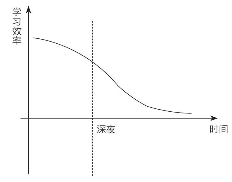 由于每个人的身心状况不同,无法建立细致的数学模型来确定那个精确的最值点,所以你不可能得到一个精确的数据。比如对某名学生来说,一定要睡 8.15 小时才能获得最大学习成果,如果睡了 8.05 小时或者 8.25 小时,那学习效率就降低了。但根据大范围的实践经验来看,我们可以有一个大致的区间,这就是我们在第八章中曾提到的作息安排。初中生适合在晚上 9:30~10:00 入睡,随着年龄和学业压力的增大,入睡时间逐渐变晚,高中生适合在晚上 11:00~11:30 入睡,或者略早。在特殊情况下可以灵活调整。